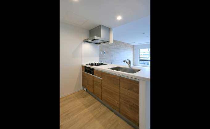 地下鉄とJR沿線の間に所在し、地下鉄駅へ徒歩6分、JR駅へ徒歩9分ととても利便性の高い立地に所在します。所在都市の中心駅へは乗り換え無し約10分でアクセスできます。全タイプが独立キッチンとなっており、リビングスペースを広く使うことができます。駐車場充足率は55%で、大半が建物1階部分の屋内ガレージとなっております。建物内の回廊など共用部はブラウンを基調とした配色に、広いスペースを贅沢に確保することにより重厚感と開放感を両立させたデザインです。